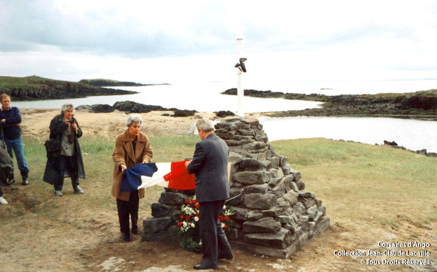 Pour l’inauguration de ce cairn l’ambassadeur de France, accompagné par Anne-Marie Vallin Charcot, petite fille du commandant Charcot et de son arrière petite fille, assistèrent avec les scouts et les habitants de Borganes à la manifestation de dévoilement de la plaque en bronze souvenir au Pourquoi pas ?