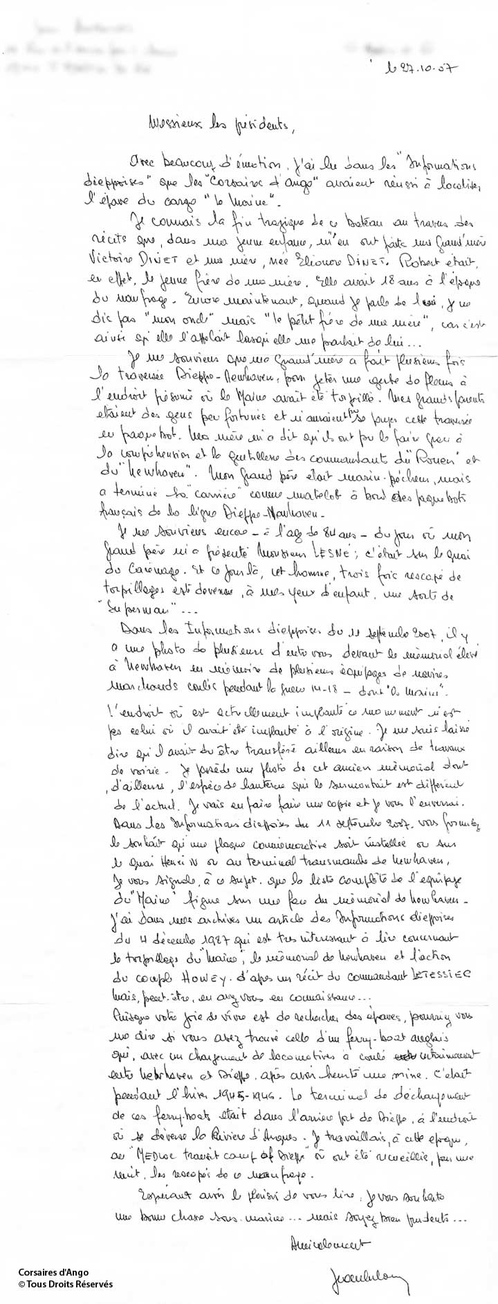 Après 5 ans de recherche, les corsaires d'Ango retrouvent l'épave du Maine en 2007.