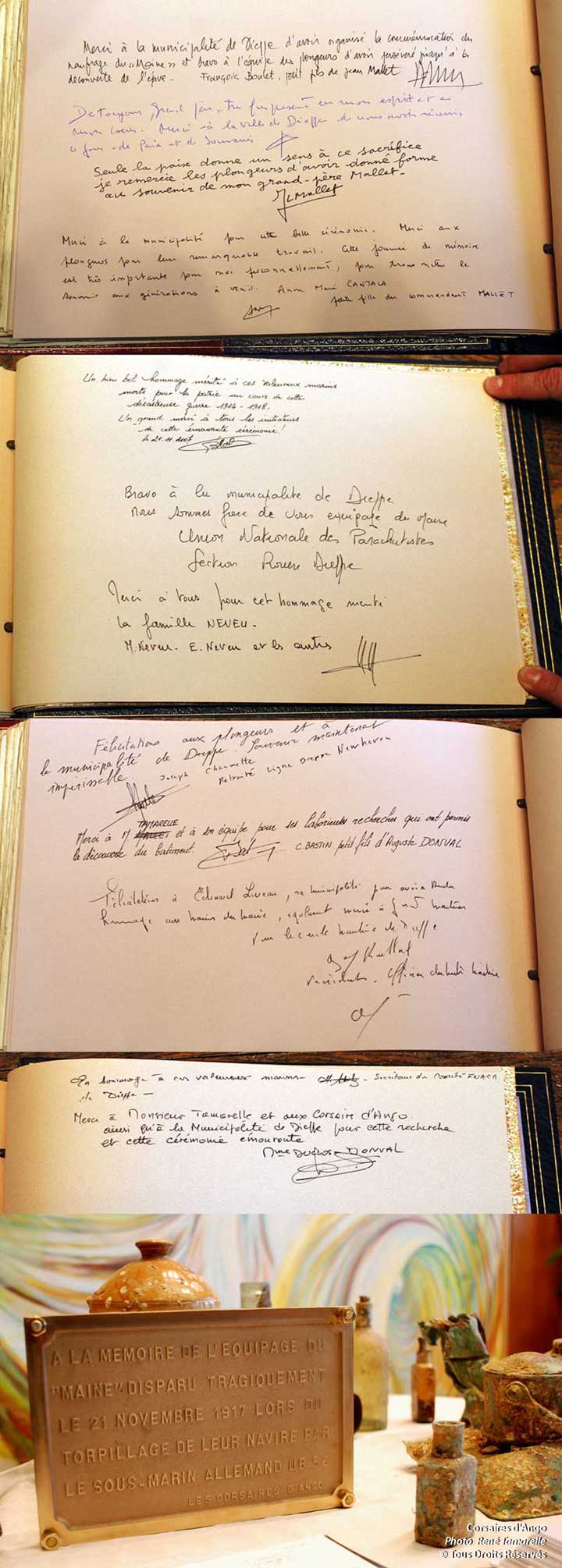 À l'initiative des corsaires d'Ango et avec le concours de la municipalité de Dieppe, une plaque est apposée sur le mur de la Tour aux crabes, quai Henri IV de Dieppe et une plaque en bronze est déposée sur l'épave par les plongeurs au cours de la journée de commémoration de la dispartion du Maine du 21 novembre 2007.