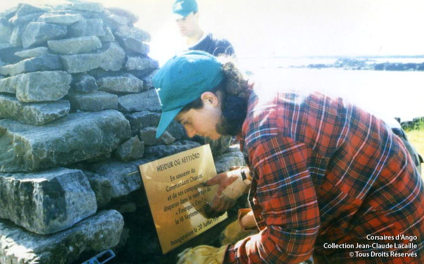 Ils reçurent l’aide des islandais et en juillet 1997 le cairn fut terminé. Mais avant de poser la dernière pierre, ils ont déposé dans ce monument, les reliques que je leur avais confiées : le rapport du naufrage mais aussi des lettres des familles des marins qui m’avaient été offertes pour me remercier d’avoir organisé le cinquantenaire de la disparition du Pourquoi-pas ? en septembre 1986 à Saint-Malo.