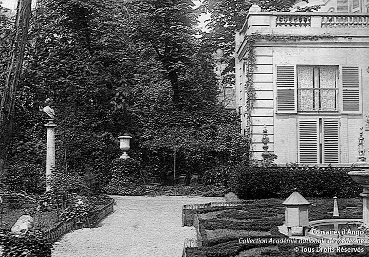 Par les jardins, les Daudet voisinent avec les Charcot dont ils voient le jardin avec ses dessins de buis. Jean-Martin Charcot a redessiné lui-même ce magnifique et vaste jardin à la française avec des courbes harmonieuses de parterres, des massifs de verdures du jardin, ses festons de buis et y installe des japonaiseries et les bustes de Jeanne et de Jean sculptés par Mme Charcot. Le Professeur ajoute deux ailes en retour sur le jardin (disparues aujourd'hui). L’une est pour pour l’atelier d’ar Mme Charcot ; l’autre est pour pour son cabinet de travail et de consultation. Jean-Baptiste à sa chambre au ez-de-chaussée, la seule chambre à coucher qui ne soit pas à l'étage.