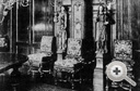 À l'extrémité de ce sombre et imposant cabinet où il examine ses malades et travaille jusqu'à très tard le soir, il installe un grand bureau tou plat, couverts de livrs et de manuscrits, son fauteuil et beaucoup d'autres siège. Dans la partie du fond, se trouve la cheminée et des vitrines qui renfermes des antiquités. Les murs sont couverts de tapisserie et de tableaux. D'ailleurs, Jean-Martin Charcot a plécé, qu'elles soient toujours présente à son regard, les noces de Cana de Jan Steel qu'il ne se lassait d'admirer qu'il n'eût consenti à aucun prix à se séparer.