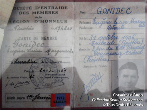 Réuni le 25 novembre 1936, le Conseil des ministres décide, sur la proposition de M. Gasnier-Duparc, ministre de la Marine, d'attribuer la croix de chevallier de la Légion d'honneur au maître-timonier Gonidec.