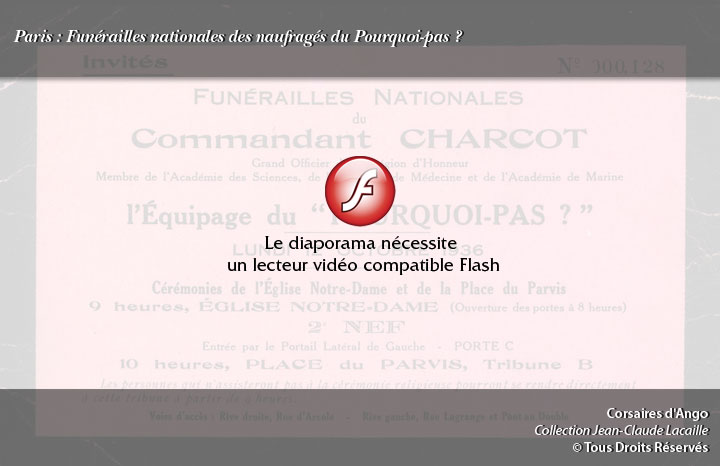 À 8 heures, les portes de Notre-Dame s'ouvrent aux autorités, aux délégations et aux invités. Les familles viennent prendre place autour de Madame Marguerite Charcot, de ses filles Monique et Martine, de son gendre Monsieur Robert Allart, de sa belle-sœur Madame Jeanne Waldeck-Rousseau (veuve de Henri Liouville), de M. et Mme Liouville et du quartier-maître Eugène Gonidec.