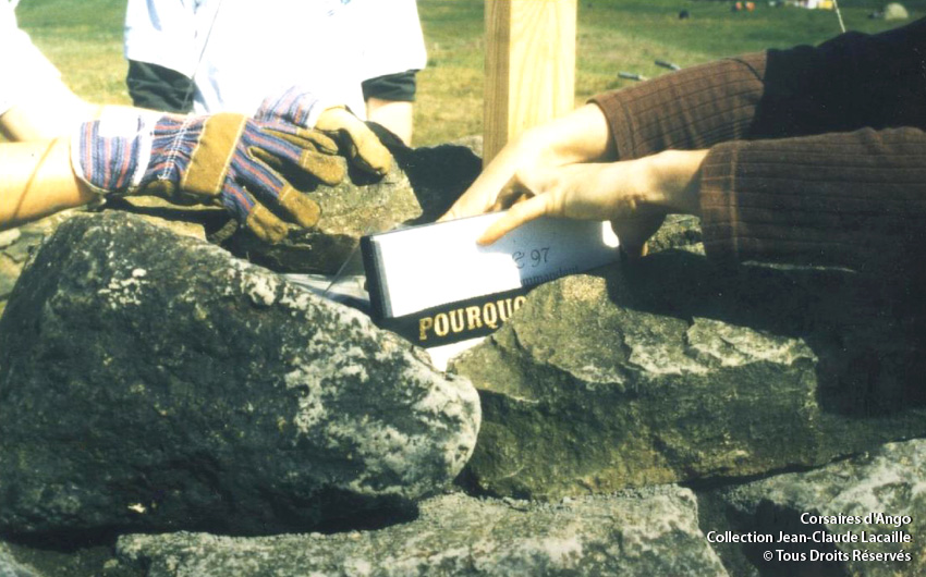 En juillet 1997, non loin de la ferme de Straumfjörður, les scouts normands construisent le cairn en 15 jours avec l'aide des islandais. Avant de poser la dernière pierre, ils déposent dans le monument, les reliques que Jean-Claude leur a confiées : le rapport du naufrage mais aussi des lettres des familles des marins qui lui avaient été offertes pour le remercier d’avoir organisé le cinquantenaire de la disparition du Pourquoi-pas ? en septembre 1986 à Saint-Malo. Ainsi donc repose dans ce cairn des souvenirs émouvants : une lettre de la fille du commandant Charcot, une lettre de Marthe Emmanuel et les lettres des familles ainsi qu’un bandeau du Pourquoi-pas ? que les marins portent sur leur béret.