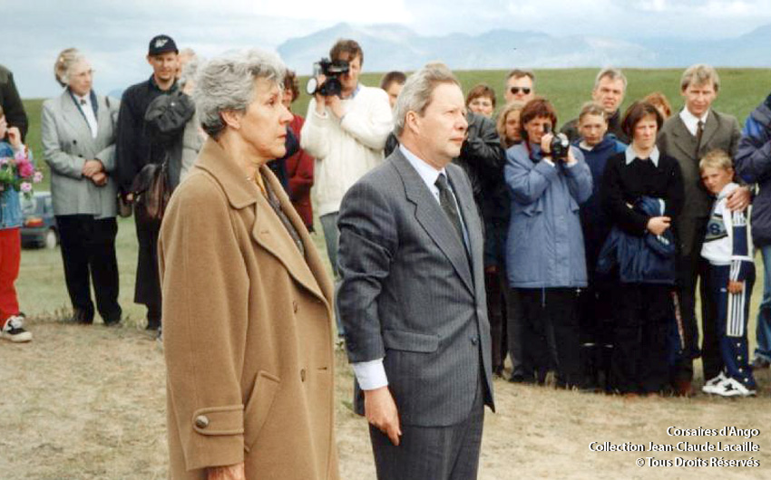 Puis, Mme Anne-Marie Vallin Charcot, petite fille du commandant Charcot, accompagnée de M. Cantoni, Ambassadeur de France en Islande inaugure à Straumfjörður, le monument. Entourée des scouts de France et des habitants des environs de Straumfjörður: elle dévoile la plaque en bronze « À la mémoire de l’équipage du Pourquoi-pas ? »